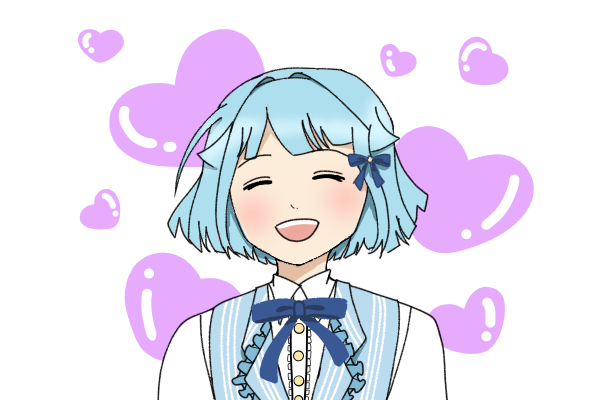 After the song, everyone blows flying kisses towards Hajime—and suddenly, several purple hearts appear all around him! Hajime chuckles heartily, watching the hearts hop and dance around him. With the most cheerful voice he could muster, he says:
